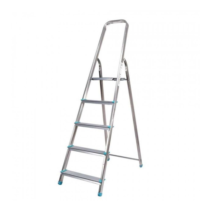 Escabeau en aluminium EcoPlus, 5 marches, modèle 00650, léger et stable, parfait pour les travaux domestiques nécessitant une hauteur modérée. Design compact et sécurisé pour un usage quotidien.