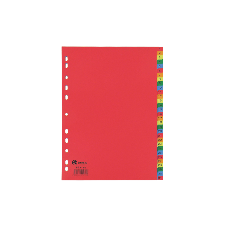 Intercalaire mensuel en polypropylène (PP), format A4, composé de 12 onglets imprimés de janvier à décembre. Fabriqué en PP souple et résistant, souvent recyclable (surtout en version grise), il est indéchirable et perforé pour s'adapter à tous types de classeurs. Format : A4 (22,5 × 29,7 cm) ; Nombre d'onglets : 12 (1 par mois) ; Matière : Polypropylène (recyclable selon modèle) ; Épaisseur : 120 microns ; Couleur : Gris ou couleurs assorties selon version ; Usage : Organisation annuelle de documents professionnels, scolaires ou administratifs