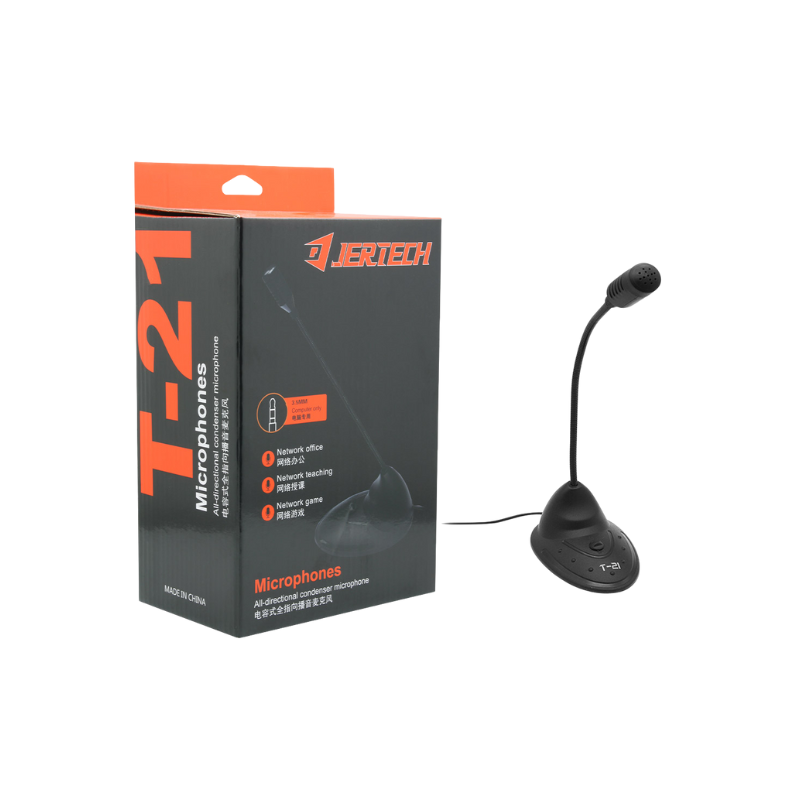 Type de microphone : à condensateur, offrant une prise de son de haute qualité. - Directivité : omnidirectionnelle à 360°, captant le son de toutes les directions pour une reproduction naturelle. - Sensibilité : environ -58 dB, assurant une captation claire même à faible volume. - Réponse en fréquence : 30 Hz à 16 kHz, couvrant une large gamme de fréquences pour une reproduction sonore précise. - Impédance : 32 ohms, compatible avec la plupart des appareils - Connectivité : prise jack 3,5 mm, plug-and-play, sans besoin de pilote. - Le Jertech T-21 est un microphone à condensateur omnidirectionnel conçu pour offrir une qualité sonore supérieure dans divers environnements. Grâce à sa directivité à 360°, il capte le son de manière uniforme, ce qui le rend idéal pour les conférences, les enregistrements vocaux et les applications multimédias.